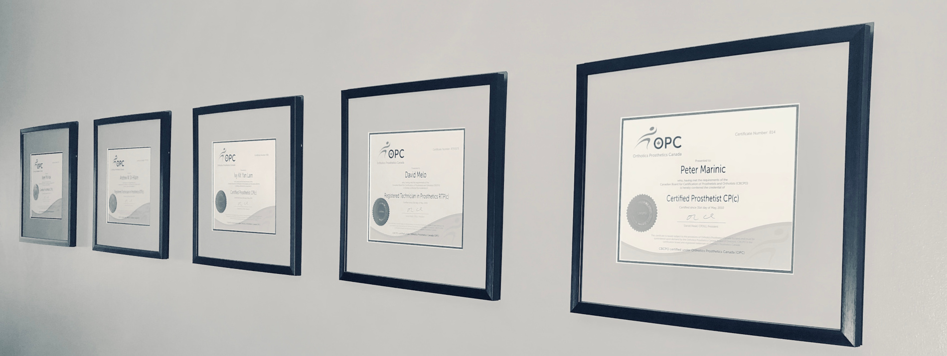 Our clinic employs Certified Prosthetists and Orthotists and Registered Technicians. We are Certified /Registered by the Canadian Board for Certification of Prosthetists & Orthotists (CBCPO). The CBCPO certification program is operated and regulated by Orthotics Prosthetics Canada (OPC) which is the governing body of the P&O profession in Canada. OPC professionals are considered to be the experts in the field of Orthotics and Prosthetics. OPC sets the standards for education, residency requirements, national exams and continuing education. Its members must adhere to a strict ethical code of conduct as well as remain up to date with new innovations through mandatory continuing education. For more information regarding Orthotics Prosthetics Canada please follow this link www.opcanada.ca.